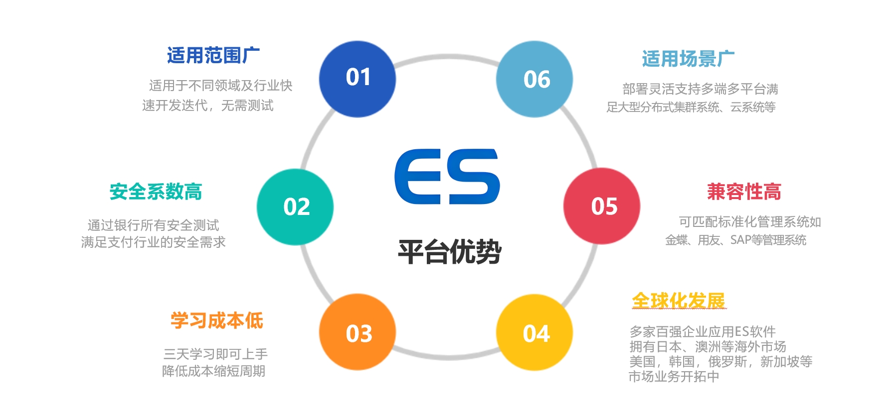 ES软件是面向业务的、开放的低代码快速开放开发与应用平台。即区别于传统的软件开发模式——不用写代码,不用测试。